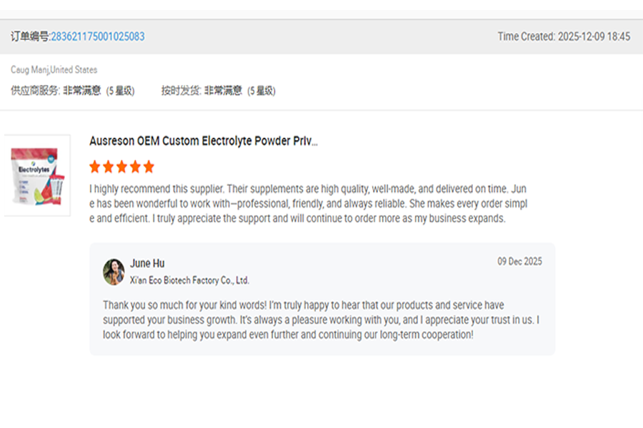 I highly recommend tnis supplier, Their supplements are high quality, well-made,and delivered on time.June has been wonderful to work with-professional,friendly, and always rellable. She makes every order simple and efficlent.I truly appreclate the support and will continue to order more as my business expands.